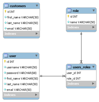 4-1 customers는 데이터 클래스이고 나머지는 인증관련 테이블이다.