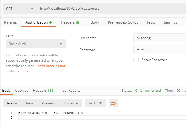 Spring Security : WEB + Security - Basic Authentication Entry point 설정(인증 실패 메시지 변경)