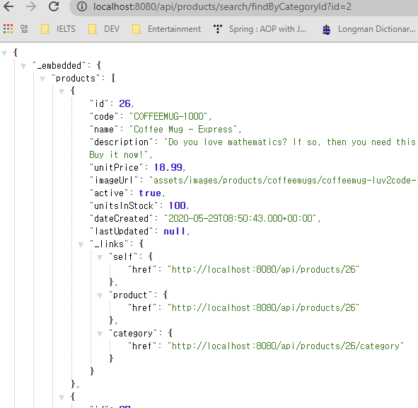 http://localhost:8080/api/products/search/findByCategoryId?id=2