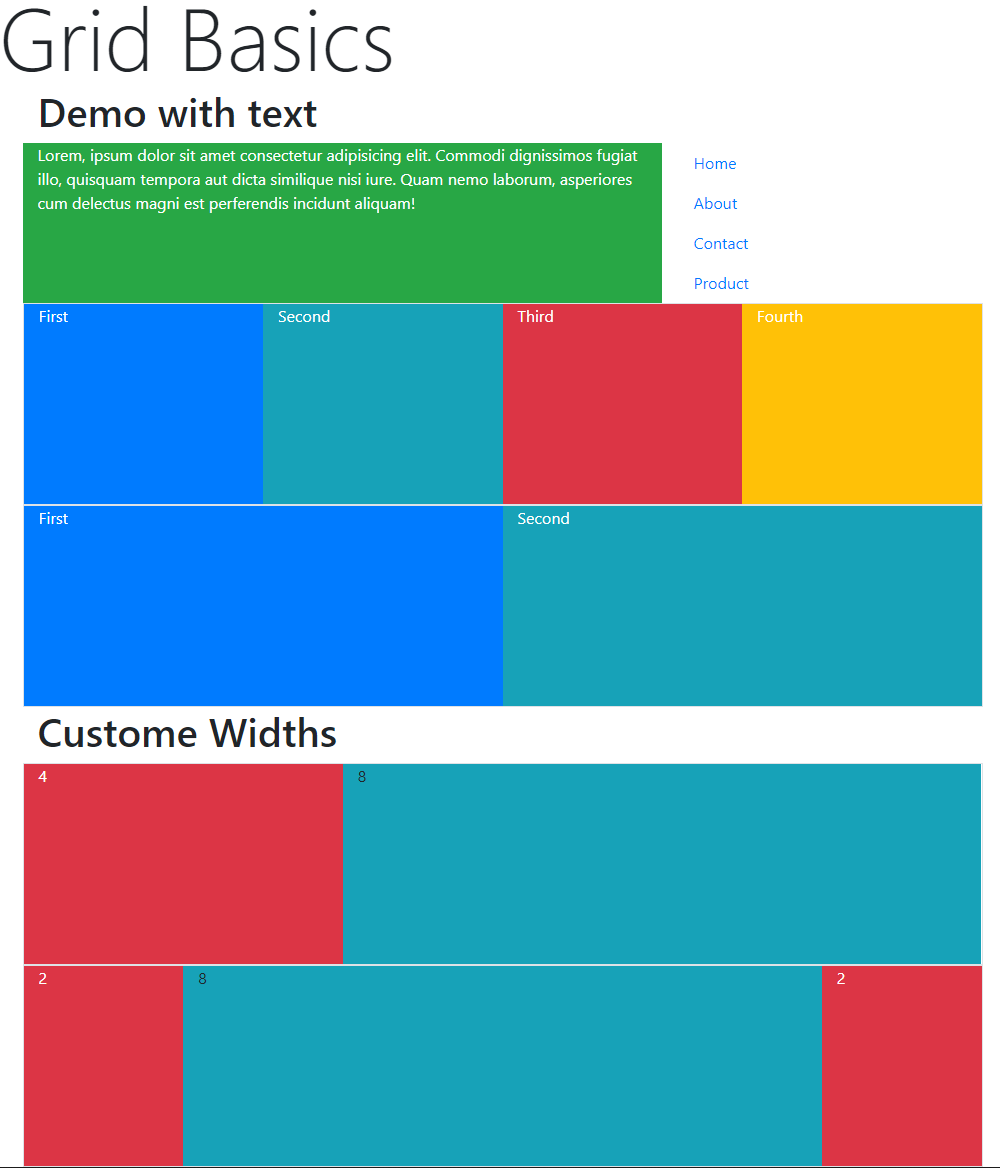 1-2 열의 크기는 0번 항목의 12등분한 공간을 지정하여 설정한다. col-8 이면 8/12공간을 차지한다.