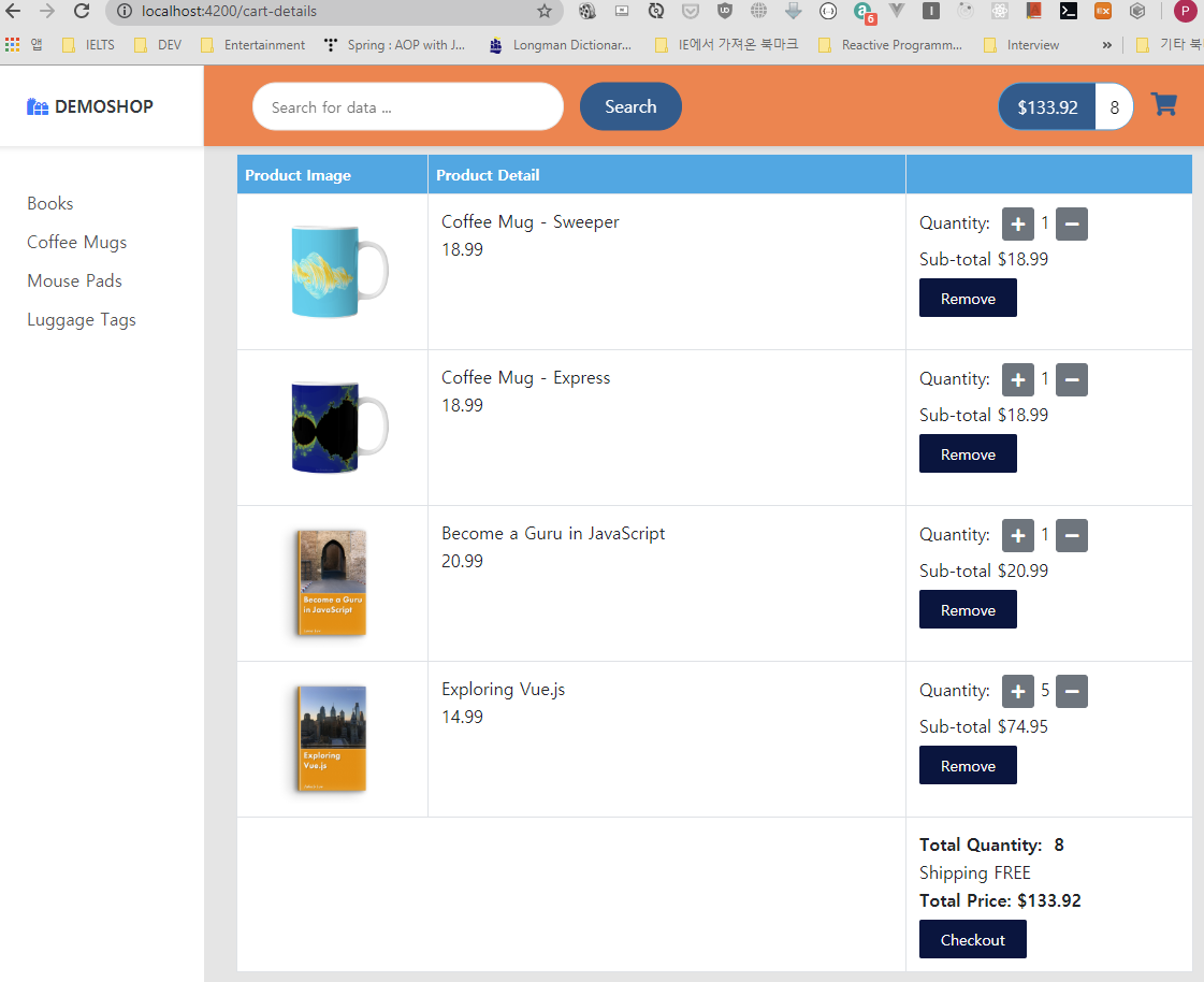 Spring Boot + Angular : Shopping Site 만들기 v4 - 2 - 카트 상세 페이지 및 FormGroup 주문페이지 작성 - Rest Repository with JPA