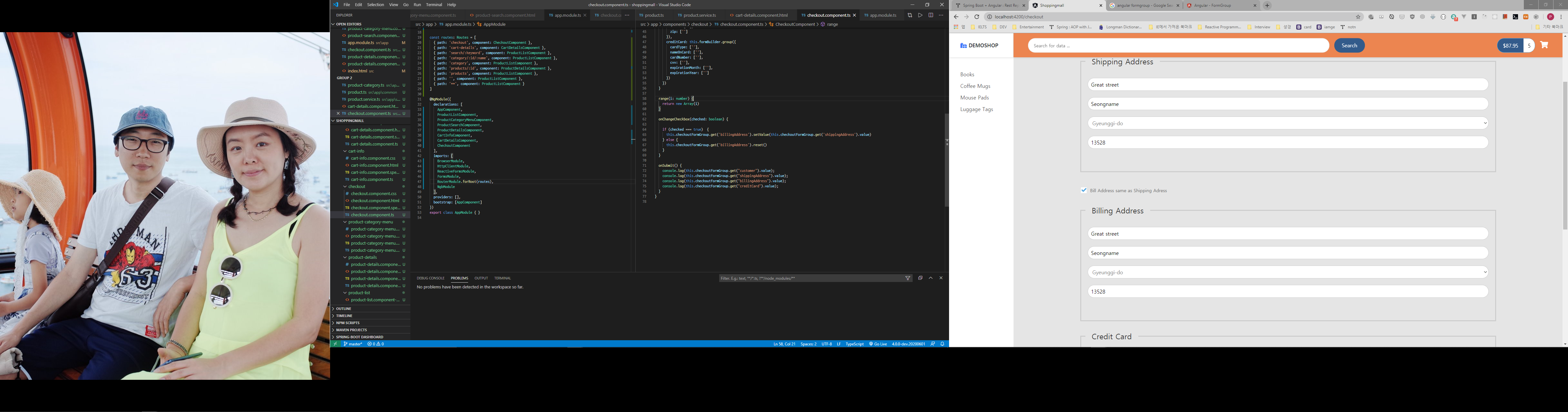 Spring Boot + Angular : Shopping Site 만들기 v4 - 3 - 카트 상세 페이지 및 FormGroup 주문페이지 작성 - Rest Repository with JPA