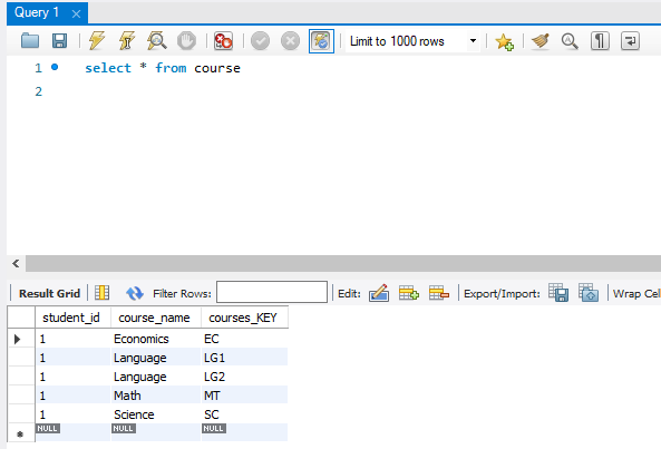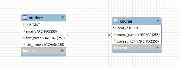 4-1 MapKeyColumn이 설정되어 있고 속성 값이 없으므로 courses_KEY라는 field에 키값이 들어간다.