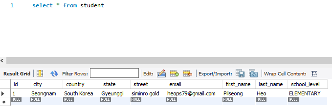 Student student = new Student("Pilseong", "Heo", "heops79@gmail.com", address, Level.ELEMENTARY);