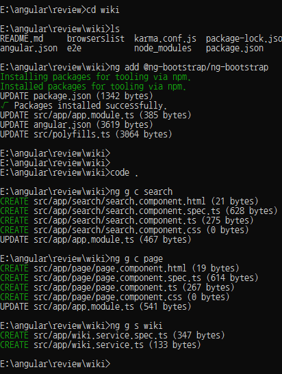 3-4 검색 컴포넌트, 페이지 컴포넌트, wiki 서비스를 다음과 같이 생성한다.