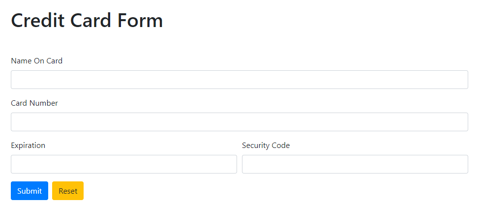 2. Credit Card를 입력하는 Form을 가지고 설명한다.