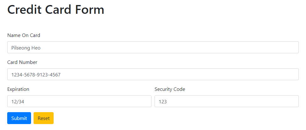 3-1 이제 아래의 입력된 정보는 Name On Card를 제외한 나머지는 숫자값만 입력이 되었고,
