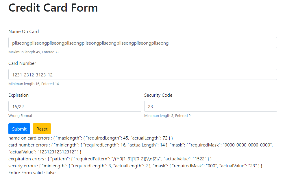 securiy errors : {{ creditFormGroup.controls.securityCode.errors | json }}<br>