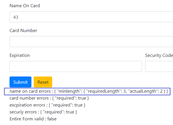 name on card errors : {{ creditFormGroup.controls.nameOnCard.errors | json }}<br>