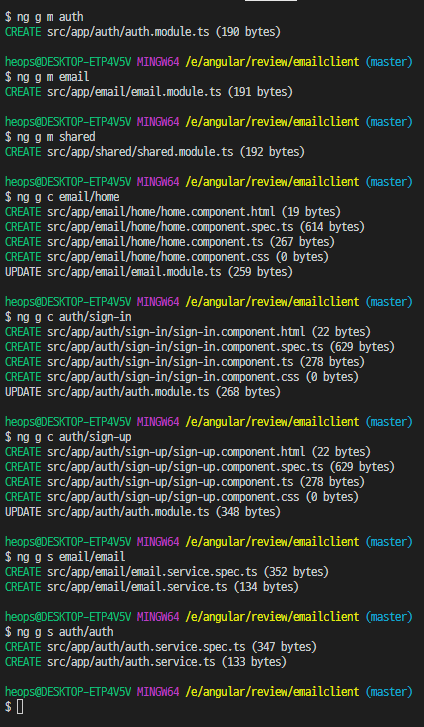 3-4 필요한 모듈, 컴포넌트, 서비스를 생성한다. 기본적인 것들만 생성하고 필요할 때 추가로 생성한다.
