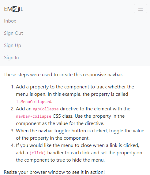 Angular : Email Client - 1-1. 인증모듈작성 - ng-bootstrap 반응형 메뉴바 작성