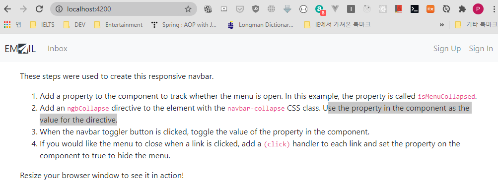 | Angular : Email Client - 1-1. 인증모듈작성 - ng-bootstrap 반응형 메뉴바 작성 (0) | 2020.06.22 |