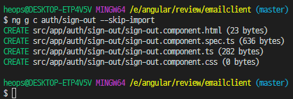2-2-3 sign out 컴포넌트이다. template에 작성할 내용이 없어 클래스에 template으로 포함시켰다.