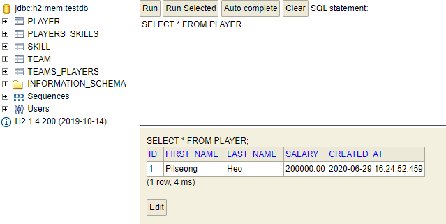 Spring Boot : JDBC를 이용한 FootBall Club example 4. 선수 저장하기