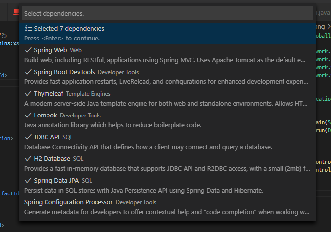 2. 지난 JdbcTemplate을 이용한 프로젝트에 Data-JPA starter를 추가한다.
