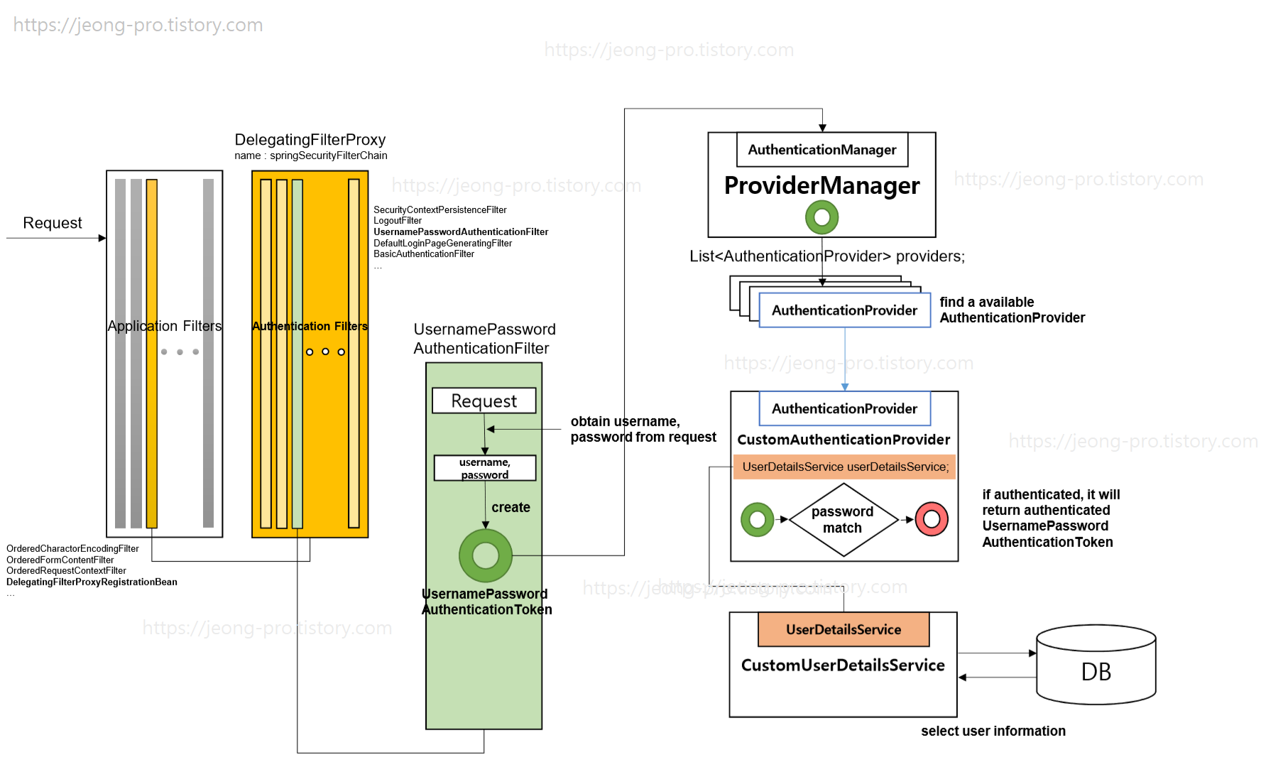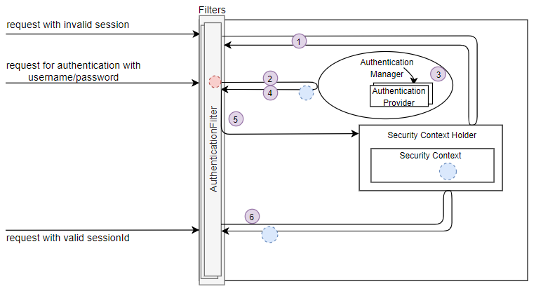 Here is the diagram for demonstrating list of classes and filters involved in spring security authentication process.