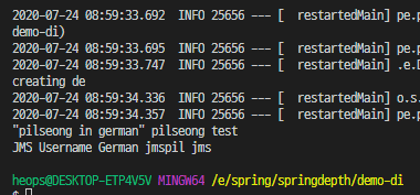 8-2-1 실행을 해보면 기본 pe.jms.username를 대페한 결과가 출력됨을 알 수 있다.