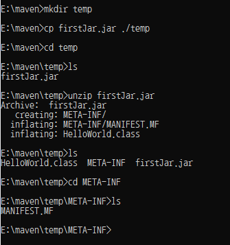 3-1-3-1 압축해지를 하면 META-INF 폴더가 추가로 생성되고 내부에 MANIFEST.MF파일이 생긴다.