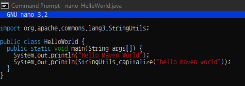 4-3-1 두번째 Hello Maven World가 첫 글자 만 대문자인것을 확인할 수 있다.