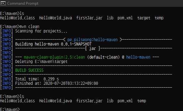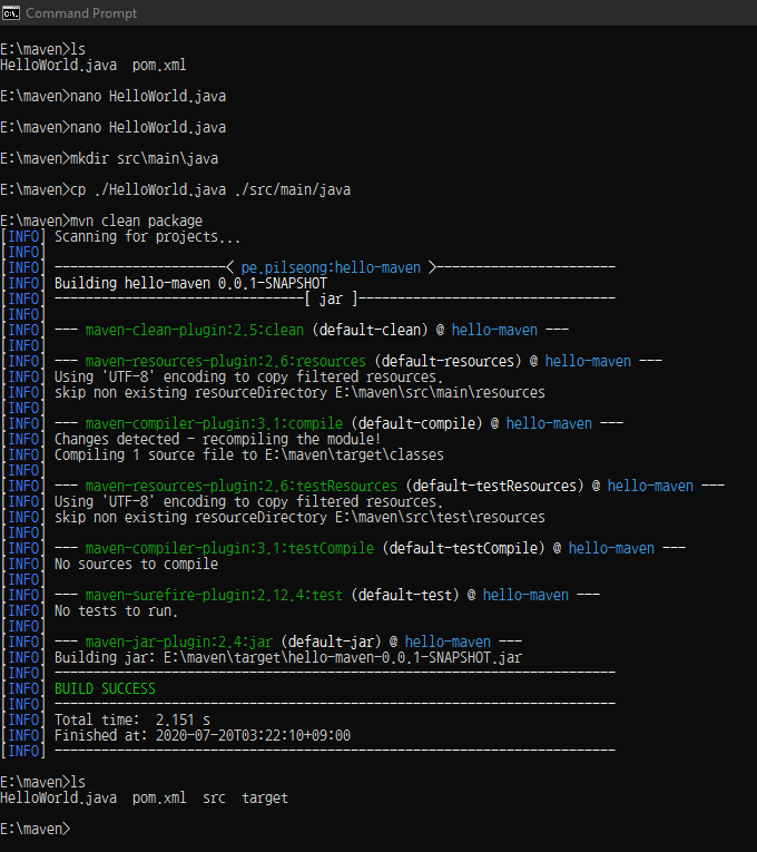 3-3 메이븐으로 mvn clean package를 실행하면 정상적으로 컴파일 된다.