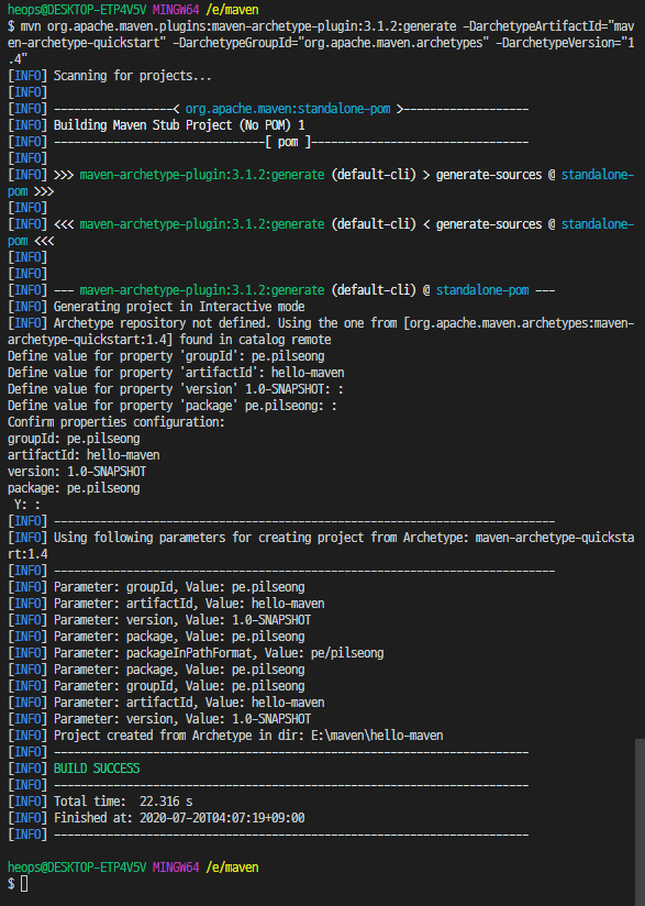 1-5 mvn archetype:generate 모듈이름 으로 생성할 수도 있다.
