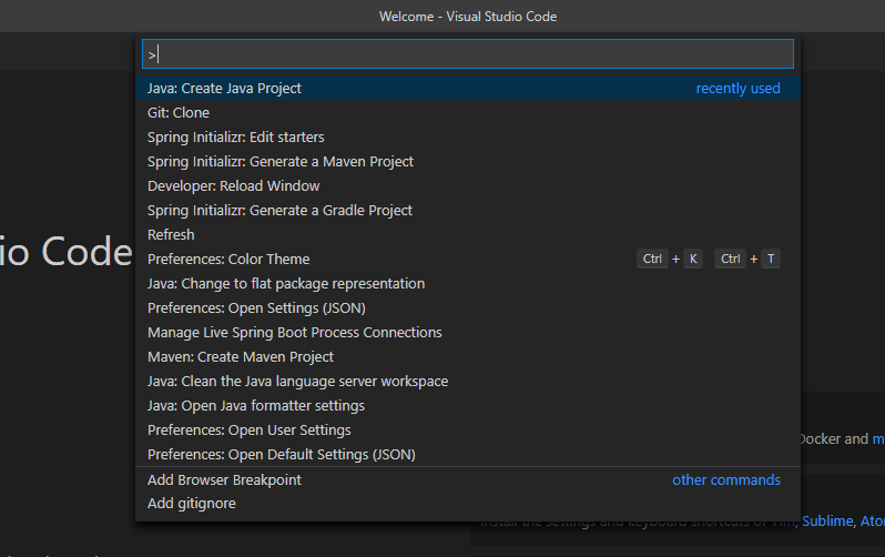 3. vs code에서 ctrl-shift-p해서 java: Create Java Project를 고른다.