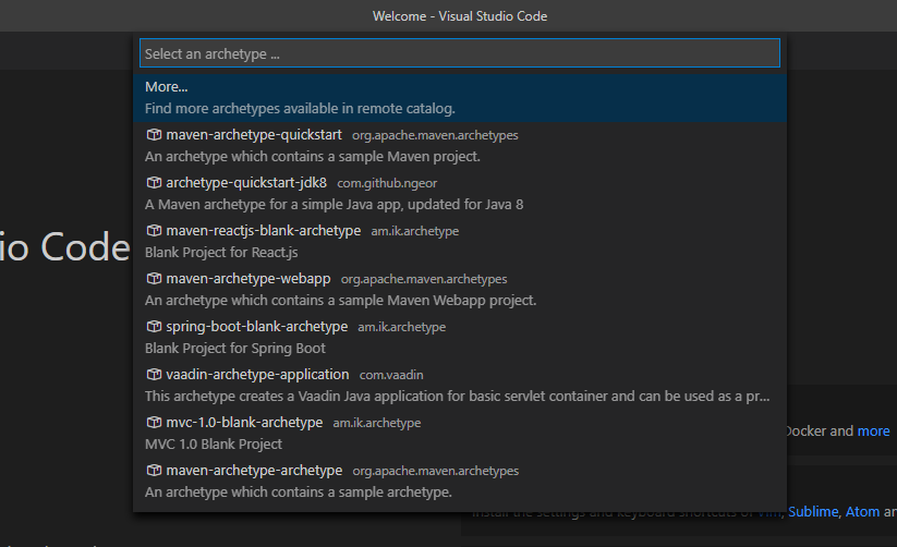 1-4 공식 홈페이지에서 안내하는 archetype은 다 없어지고 아래의 몇개 만 남아 있다.