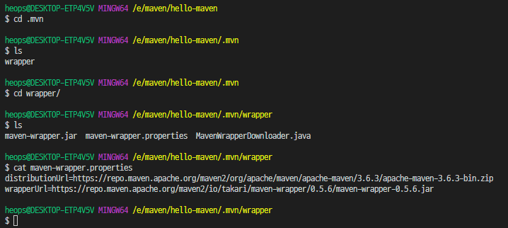 2-1-1 생성된 .mvn/wrapper 폴더 안의 maven-wrapper.properties 파일이 아래처럼 설정되어 있다.