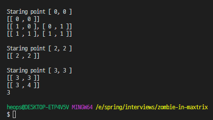 System.out.println("\nStaring point [ " + i + ", " + j + " ]");