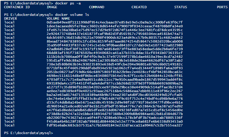 5-1 아래를 보면 컨테이너는 존재하지 않는데 volume만 존재하고 있는 상황이다.