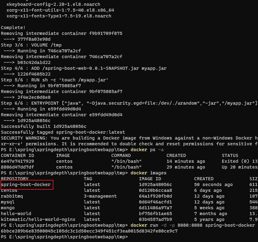 4-5-1 아래의 명령을 실행하면 현재 폴더에서 spring-boot-docker tag을 가지는 도커 이미지가 생성된다.