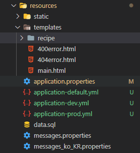3. 프로파일별로 default, prod, dev로 나누어서 작성하였다.