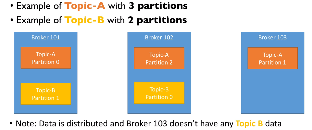 5-5-3-1 아래의 그림은 replication factor가 3이다. 3개의 카피가 3개의 브로커에 같이 저장되어 있다.