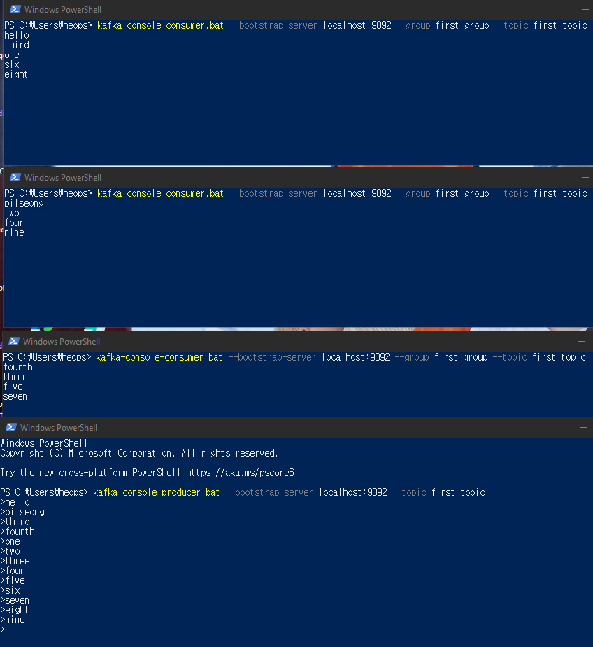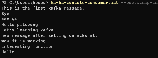 kafka-console-consumer.bat --bootstrap-server localhost:9092 --topic first_topic --from-beginning
