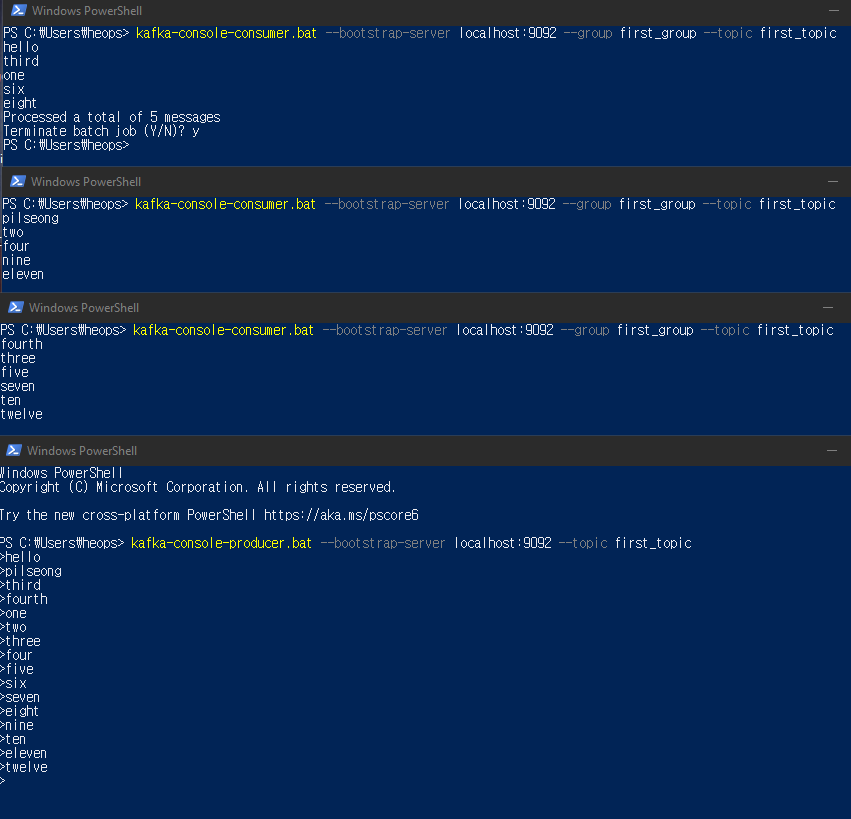 1. 카프카의 메시지 전송과 수신을 명령어로도 가능하다. kafka-console-producer / kafka-console-consumer이다.