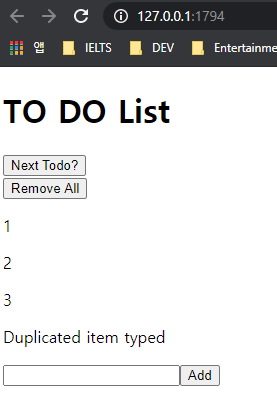 4-4-1 1, 2, 3을 추가하고 마지막으로 다시 3을 입력한 경우 중복이 표시된다.