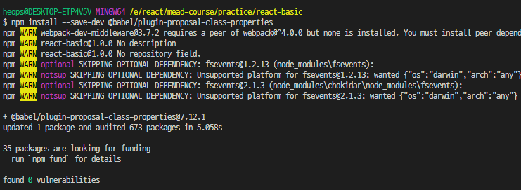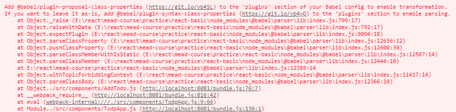 npm install --save-dev @babel/plugin-proposal-class-properties