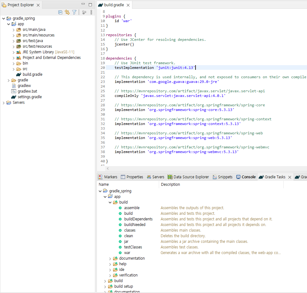 10-1 가장 쉬운 방법은 gradle로 프로젝트를 생성해서 build.gradle를 수정한 후에 import하는 방법이다.