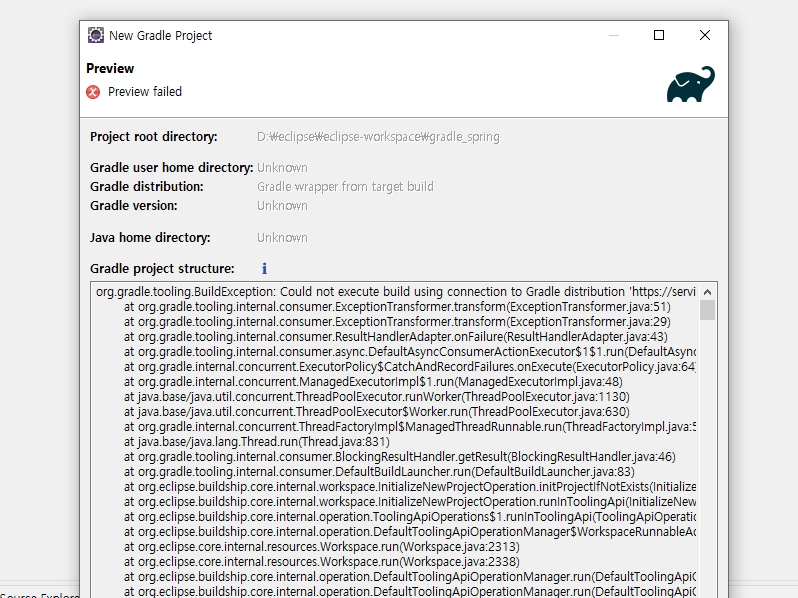 6. 이제 Gradle Project를 만든다. 만들면 그냥 에러가 뜰거다. 왜냐면 Gradle도 JDK가 필요하다.