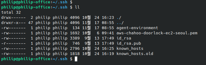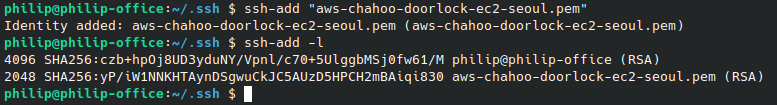 4-3 목록에 없다면 추가해 주어야 한다. 리눅스는 ssh-add 하고 뒤에 그냥 파일이름을 붙이면 된다. 해당 pem이 있는 폴더이다.