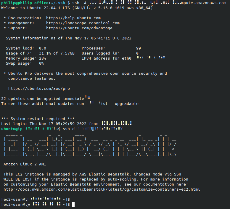 3. 이 방법은 ssh-agent를 이용하여 agent forwording라는 것을 사용하는 것인데, 단순하게 말하면 로컬에 있는 ssh키를 접속한 서버에서도 사용할 수 있게 해주는 기능이다.