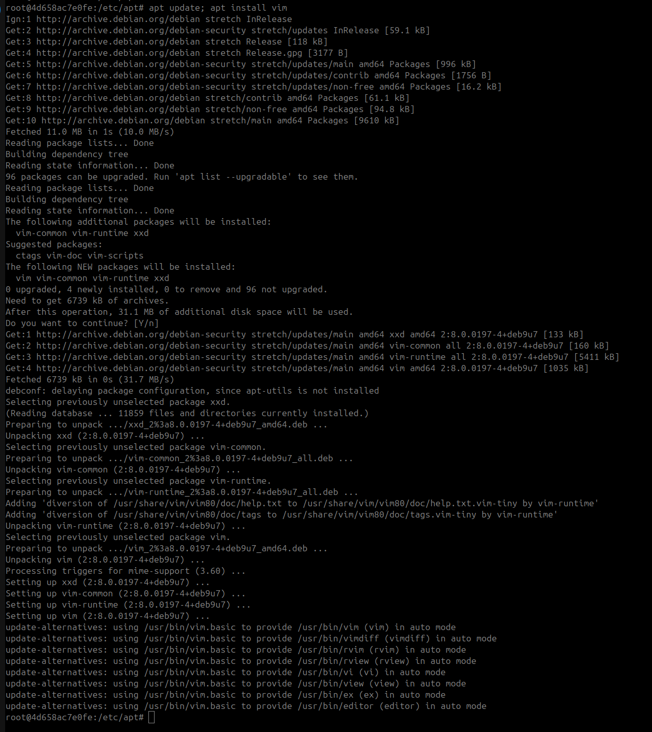apt install; apt install vim